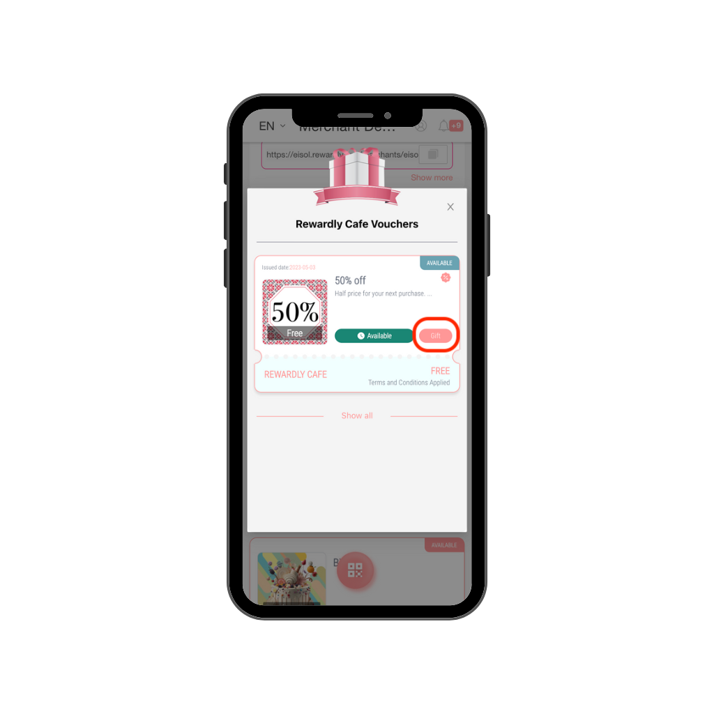 When the gifting function is enabled, all vouchers in Rewardly can transfer their ownership to the members or non-members. The gifting function increases the usability of the digital voucher and benefits the merchants with new member acquisition capability.
